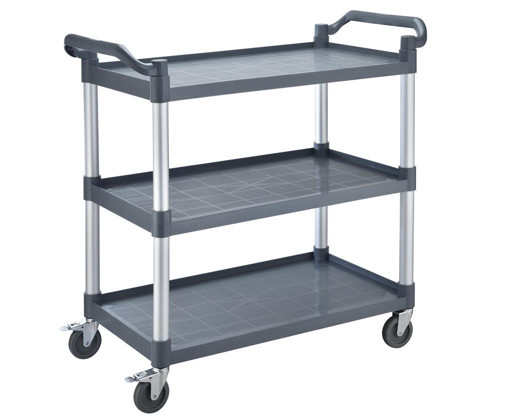 Serving trolley for transporting food and groceries made of a combination of aluminum and plastic. Robust construction will ensure a longer service life.