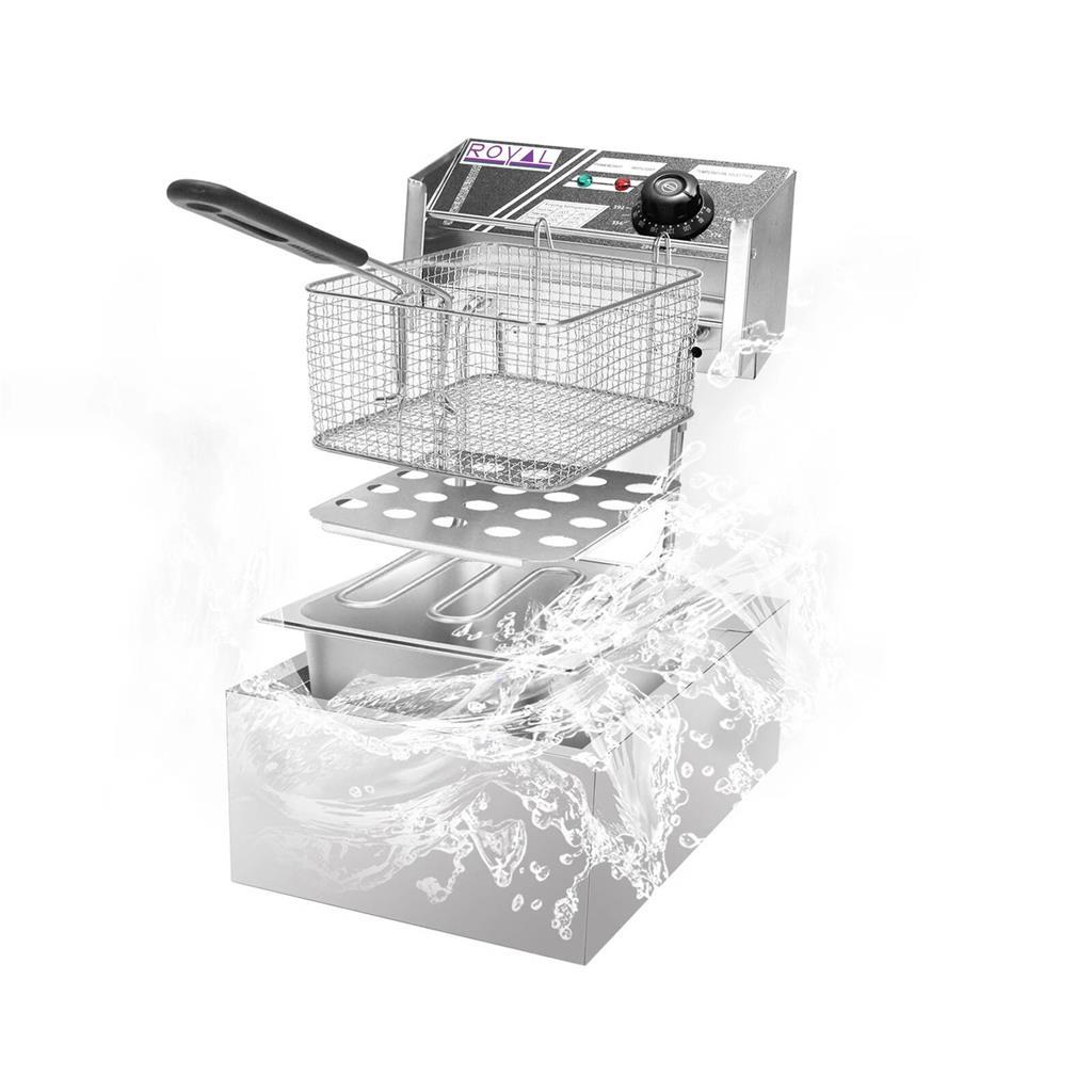 The 8L deep fryer is intended for more demanding, professional users. The housing and oil tank of the fryer are made of stainless steel (18/0), and to ensure easier cleaning, the oil tank of the fryer is removable. The fryer also includes a removable basket and tank cover. The removable basket has a long and heat-insulated handle for easier maneuvering at high temperatures.