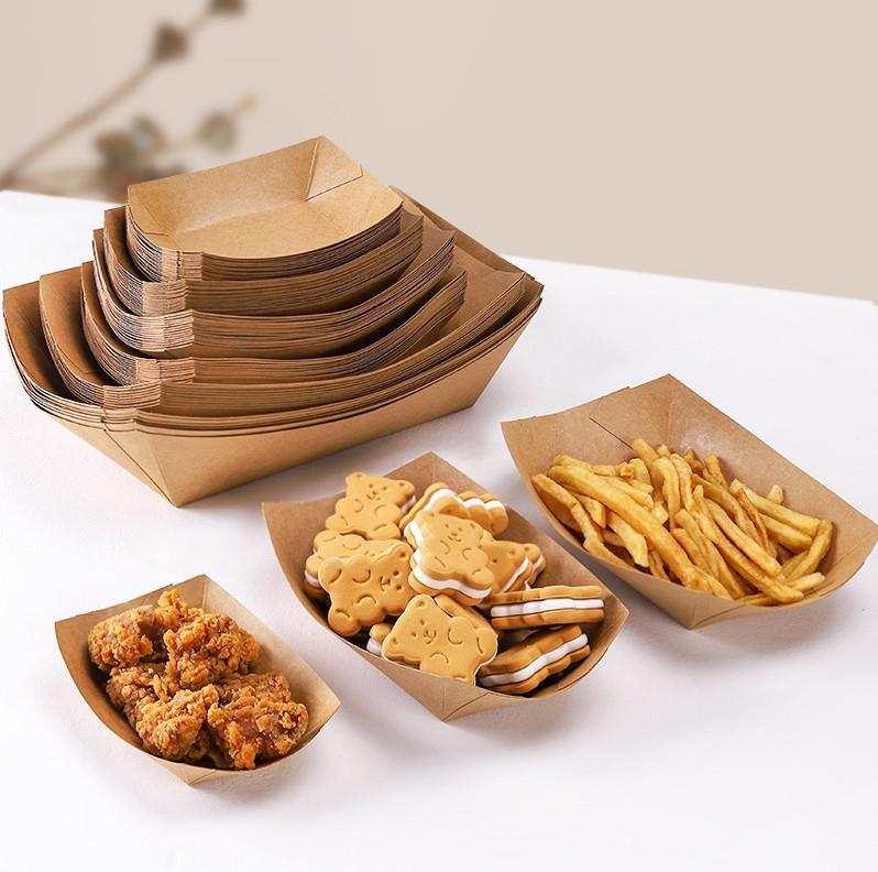 Kraft paper finger food containers are a perfect alternative to single-use plastic products. These cardboard boats are suitable for serving small meals, burgers and other finger food dishes.
