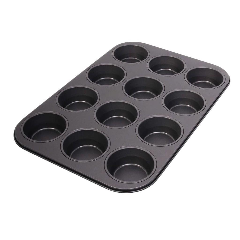 Muffin baking pan, dimensions 36 x 26.5 x 3 cm, with 12 molds.
