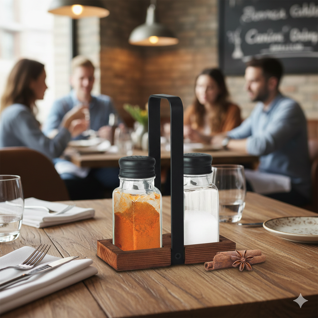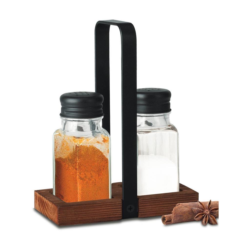 The salt and pepper seasoning set made of wood and black metal accessories will be an indispensable addition to any table - both because of its elegant appearance and its affordable price.