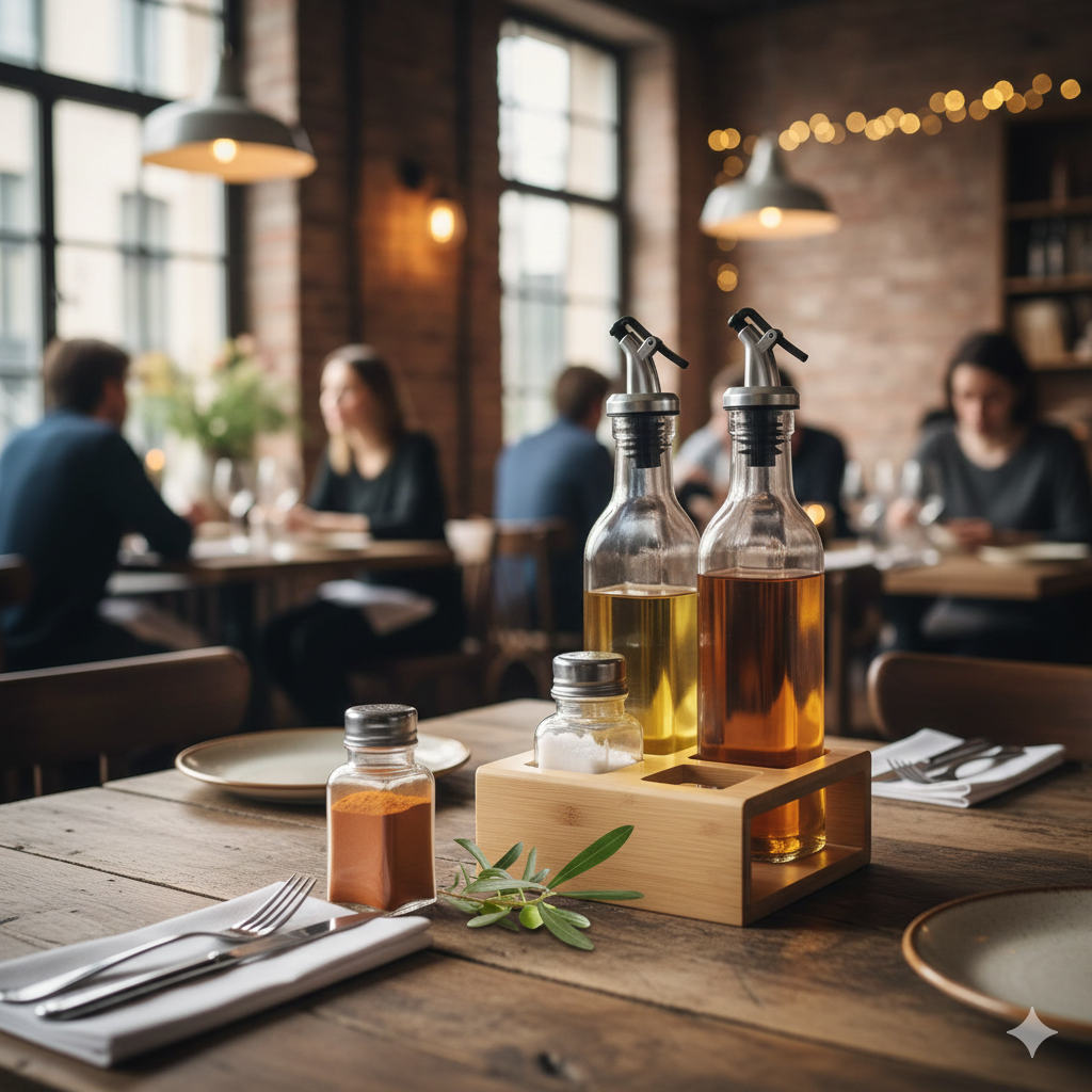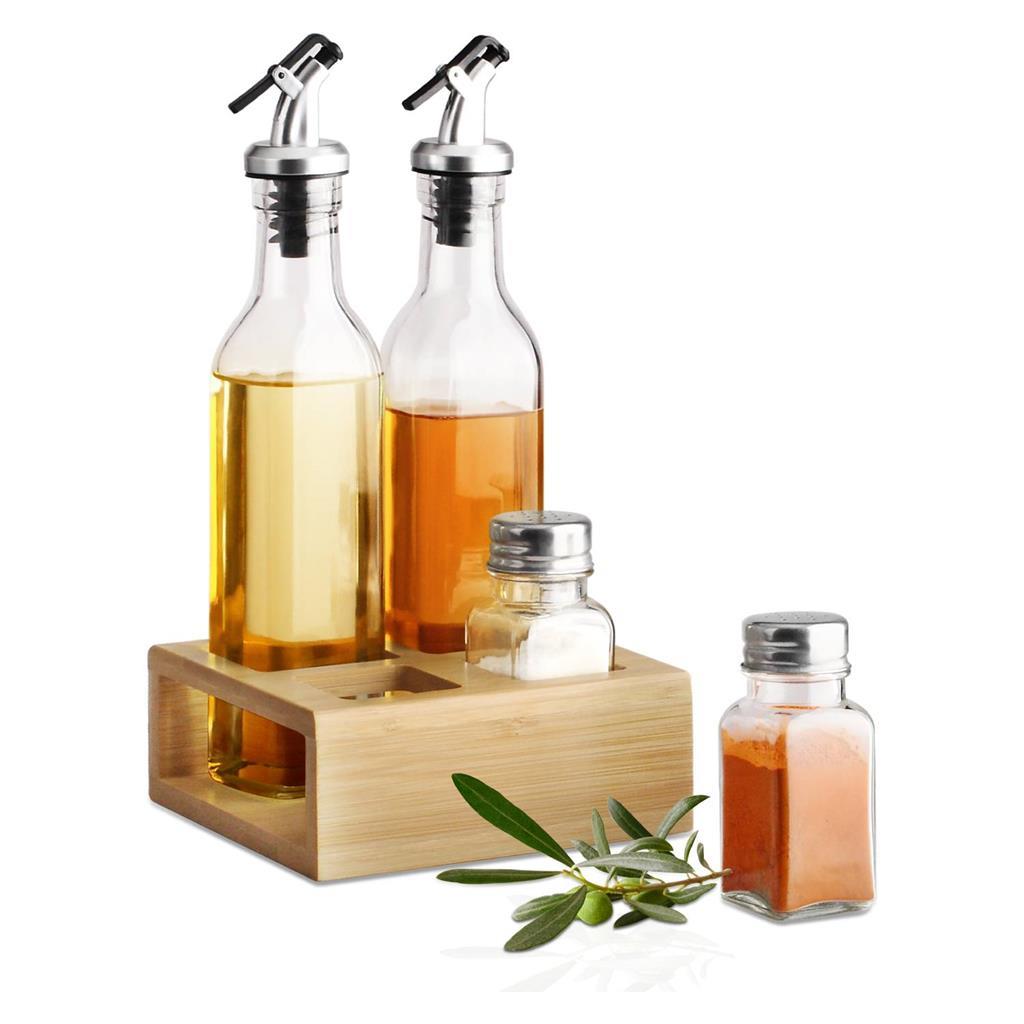 The wooden salt, pepper, vinegar and oil set is an indispensable and elegant addition to any table - both because of its natural and elegant appearance, as well as its affordable price.