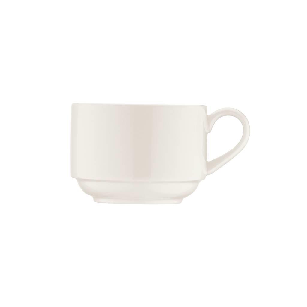 The cup from the Banquet collection is an elegant and functional cup for coffee or tea, designed for professional use in the hospitality industry. It is made of high-quality, durable porcelain that is resistant to impact, temperature changes, and frequent dishwashing. The cup has a capacity of 170 ml and is also suitable for use in the microwave. Its classic white color with a warm cream hue and simple, modern design allow it to be easily combined with other pieces from the Banquet collection. Ideal for everyday use in hotels, restaurants, cafés, or at home.