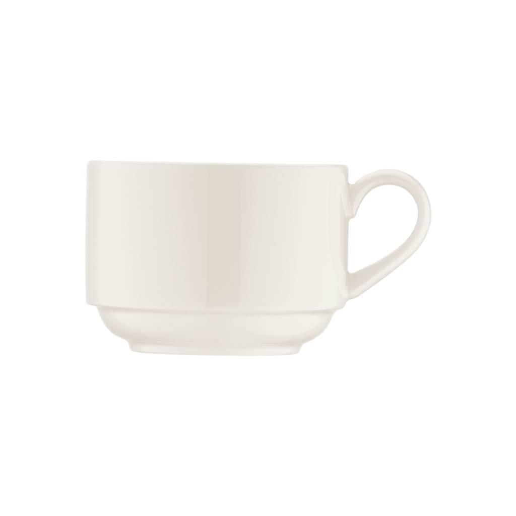 The cup from the Banquet line is a professional tea and coffee cup designed for use in hospitality settings. Made from high-quality porcelain, it is resistant to intensive use and is also suitable for dishwasher and microwave use. The cup has a capacity of 210 ml, a diameter of 82 mm, and a height of 65 mm, with a classic white color featuring a subtle cream hue. Its elegant, simple design makes it ideal for daily use in hotels, restaurants, or at home, while ensuring a professional appearance and long-lasting durability.