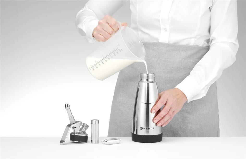 Thermo Cream Whipper and Dispenser bottle Hendi Thermo Whip, for preparing cream and creamy textures made of stainless steel.